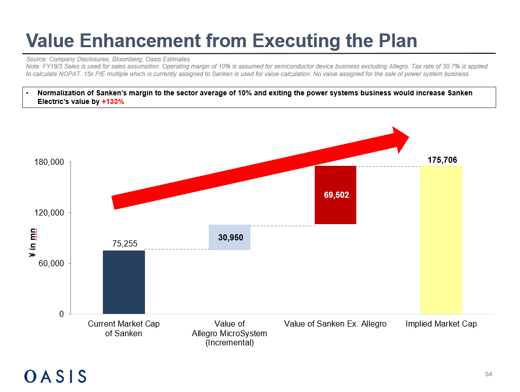 We believe that after implementing the value enhancement plan, Sanken market cap should be worth ¥176bn, or +133% from the current market cap.
